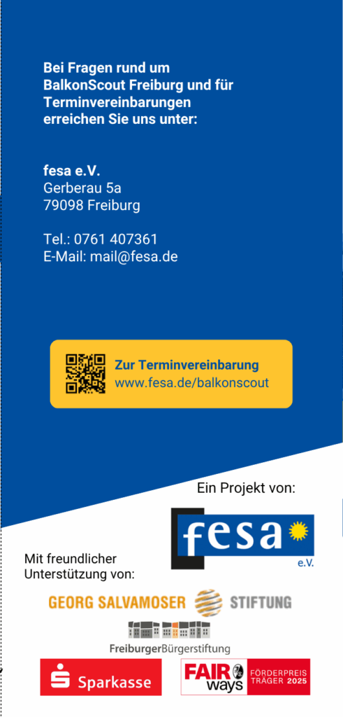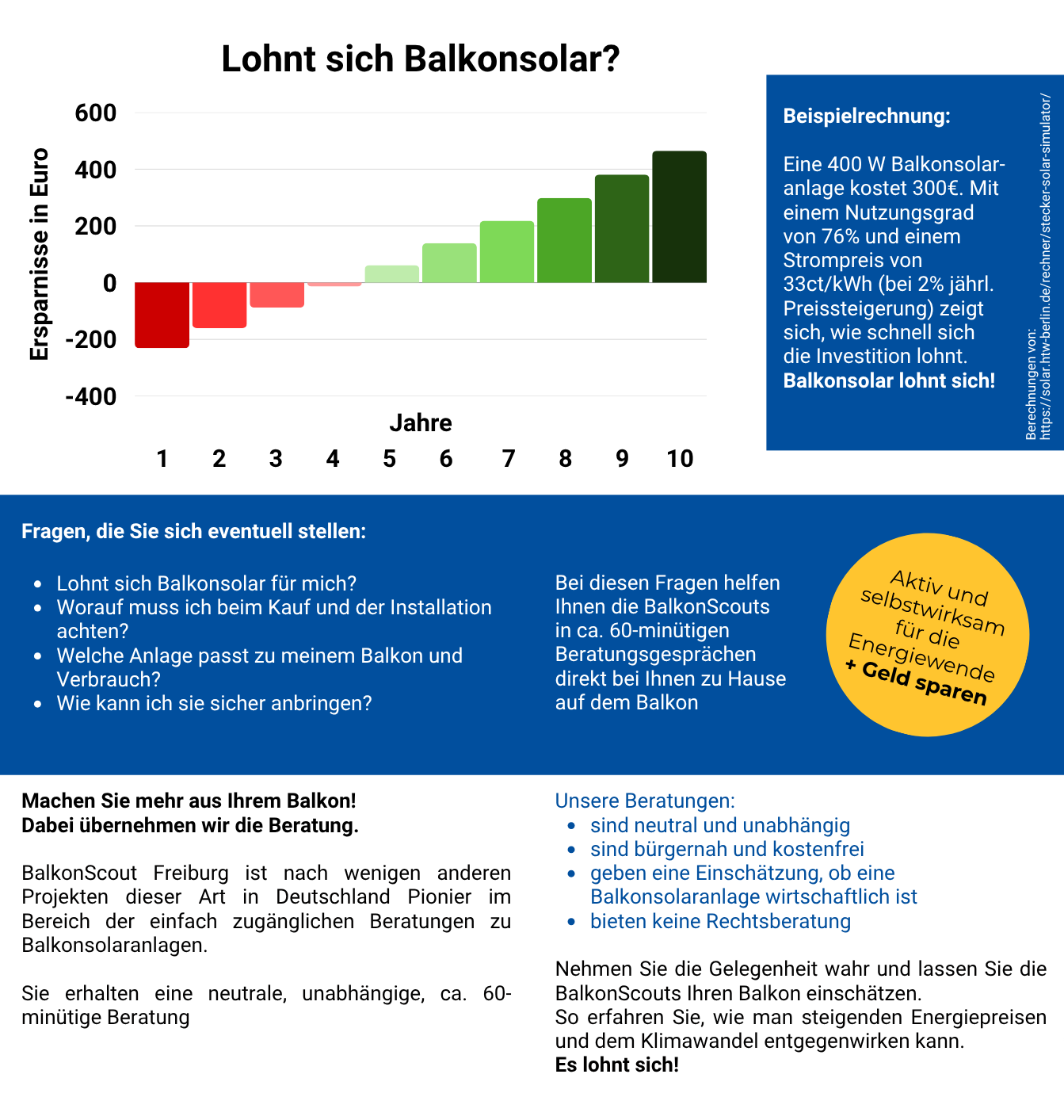 Machen Sie den ersten Schritt in Richtung eigener Solarstromproduktion- die BalkonScouts Freiburg freuen sich auf Sie und unterstützen Sie bei Ihrem Weg zur nachhaltigen Energieversorgung!